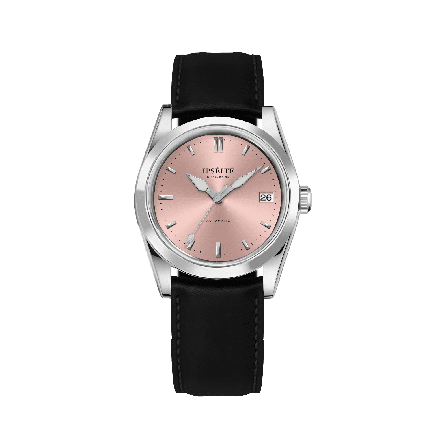 Featuring a polished 316L stainless steel case and a pink sunburst dial, the DISTINCTION Rose exudes subtle elegance. Its compact 36 mm size fits all wrists comfortably.