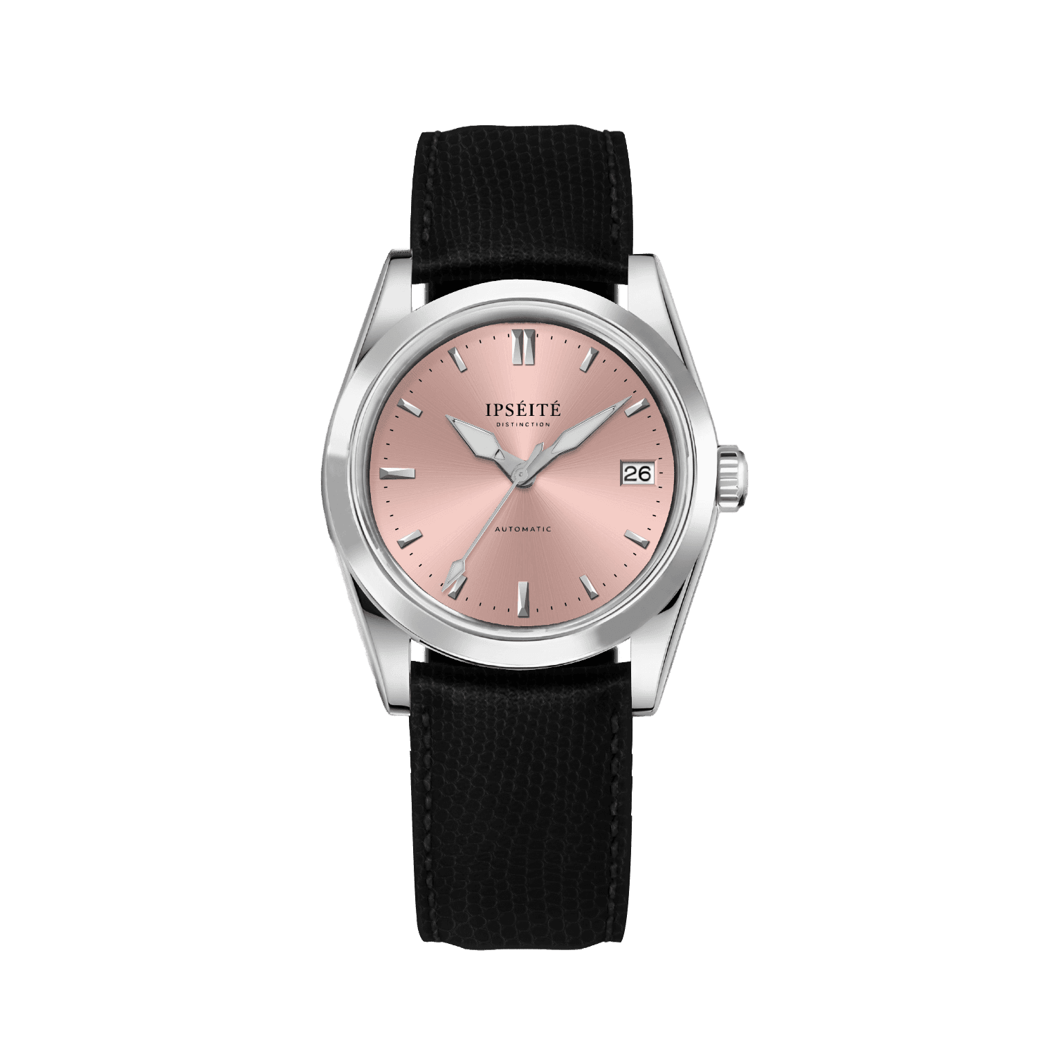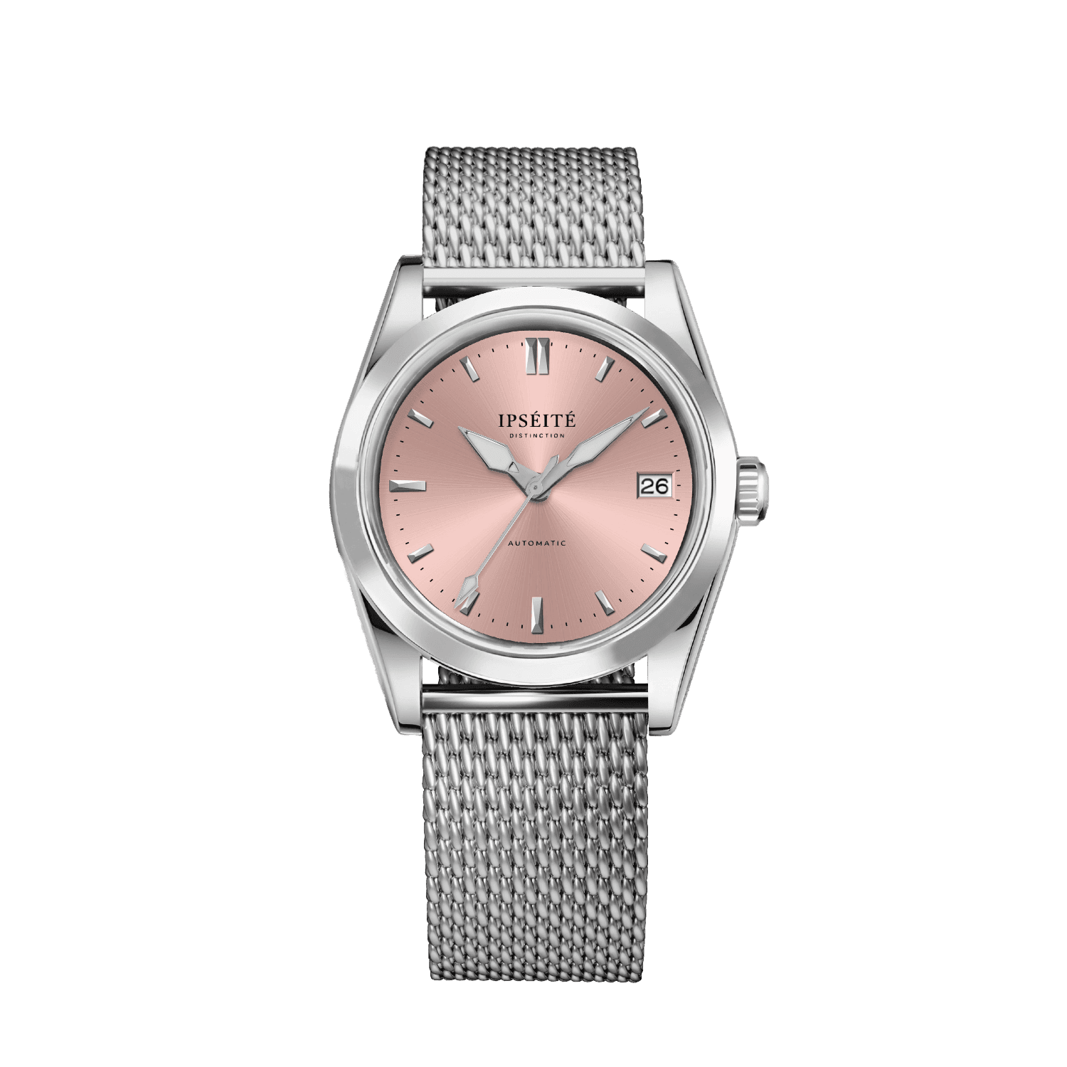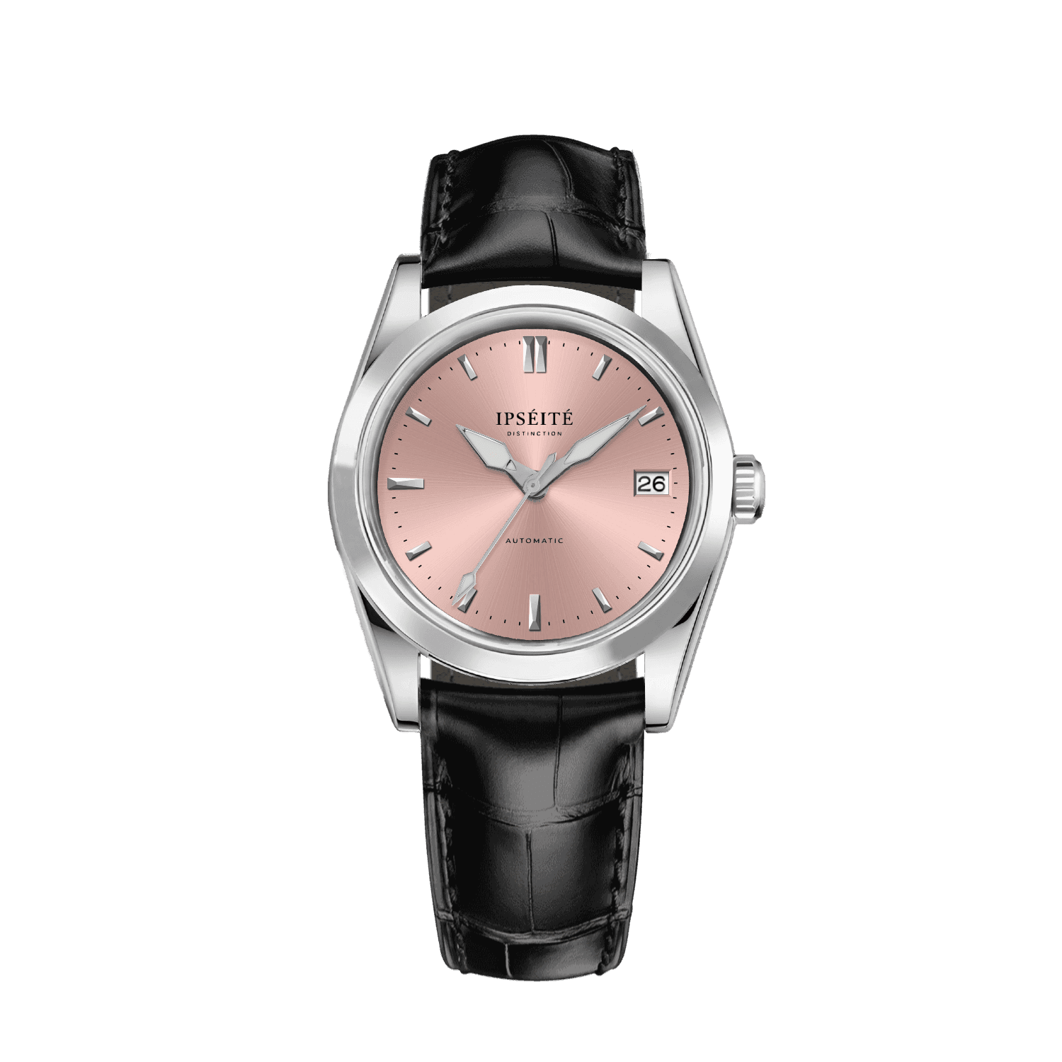 Équipée d'un boîtier en acier inoxydable 316L poli miroir et d'un cadran rose à finition sunburst, la DISTINCTION Rose ne laisse personne indifférent. Sa taille compacte de 36 mm convient à tous les poignets.